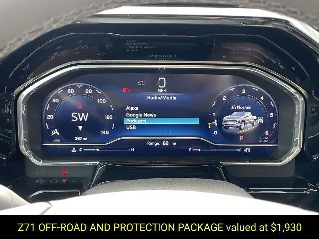 10-Way Power Driver Seat w/Lumbar, 12.3 Multicolor Reconfigurable Digital Display, 120-Volt Bed Mounted Power Outlet, 120-Volt Interior Power Outlet, 6-Speaker Audio System, Adaptive Cruise Control, All Star Edition Plus, All-Star Edition, All-Weather Floor Liner (LPO) (AAK), Apple CarPlay/Android Auto, Auto-Locking Rear Differential, Bluetooth® For Phone, Chevytec Spray-On Black Bedliner, Color-Keyed Carpeting Floor Covering, Convenience Package, Convenience Package II, Deep-Tinted Glass, Dual Exhaust w/Polished Outlets, Dual Rear USB Ports (Charge Only), Dual-Zone Automatic Climate Control, Electric Rear-Window Defogger, Electronic Cruise Control, EZ Lift Power Lock & Release Tailgate, Front Frame-Mounted Black Recovery Hooks, Front LED Fog Lamps, Front Rubberized Vinyl Floor Mats, HD Rear Vision Camera, HD Surround Vision, Heated Driver & Front Outboard Passenger Seats, Heated Power-Adjustable Outside Mirrors, Heated Steering Wheel, Heavy-Duty Air Filter, High Gloss Black Mirror Caps, Hill Descent Control, Hitch Guidance, Hitch Guidance w/Hitch View, In-Vehicle Trailering System App, Inside Rear-View Mirror w/Tilt, Integrated Trailer Brake Controller, Keyless Open & Start, Leather Package, Leather-Appointed Front Seat Trim, LED Cargo Area Lighting, Manual Tilt/Telescoping Steering Column, Off-Road Suspension, OnStar Services Capable, Perimeter Lighting, Power Front Windows w/Driver Express Up/Down, Power Front Windows w/Passenger Express Down, Power Rear Windows w/Express Down, Power Sliding Rear Window w/Rear Defogger, Preferred Equipment Group 1SP, Premium Bose 7-Speaker Sound System, Protection Package, Rear 60/40 Folding Bench Seat (Folds Up), Rear Cross Traffic Braking, Rear Pedestrian Alert, Rear Rubberized-Vinyl Floor Mats, Rear Wheelhouse Liners, Remote Vehicle Starter System, RST All Star Premium Package, Safety Package, SiriusXM w/360L Trial Subscription, Standard Suspension Package, Standard Tailgate, Steering Wheel Audio Controls, Teen Driver, Theft Deterrent System (Unauthorized Entry), Tire Pressure Monitoring System, Trailer Camera Provisions, Trailer Side Blind Zone Alert, Trailering Package, Ultrasonic Front & Rear Park Assist, Universal Home Remote, Up-Level Rear Seat w/Storage Package, Wheels: 20 x 9 Painted Aluminum, Wi-Fi Hot Spot Capable, Wrapped Steering Wheel, Z71 Off-Road & Protection Package, Z71 Off-Road Package.