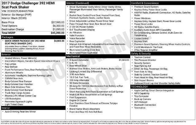 2017 Dodge Challenger 392 Hemi Scat Pack Shaker Go Mango RWD 8-Speed Automatic SRT HEMI 6.4L V8 MDS