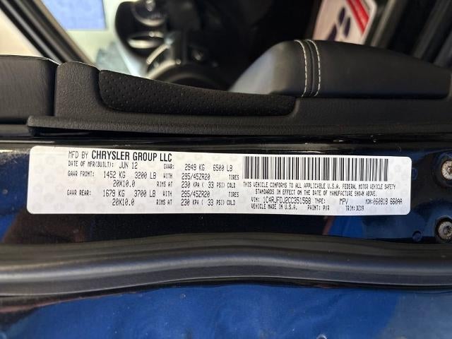 Luxury Group II (Adaptive Speed Control, Blind Spot & Cross Path Detection, Forward Collision Warning, Leather Wrapped I/P & Center Armrest, Leather Wrapped Upper Door Trim, and Power Liftgate), Quick Order Package 29L, SRT High Performance Audio (19 Speakers High Performance Audio and 825 Watt Amplifier), Trailer Tow Group IV (7 & 4 Pin Wiring Harness and Class IV Receiver Hitch), Media Center 730N CD/DVD/MP3/HDD/Navigation, Navigation System, 10 Speakers, 20 x 10 Forged Aluminum Wheels, 3.70 Rear Axle Ratio, 4-Wheel Disc Brakes, ABS brakes, Adaptive suspension, Air Conditioning, Alloy wheels, AM/FM radio: SIRIUS, Anti-whiplash front head restraints, Audio memory, Auto High-beam Headlights, Auto-dimming door mirrors, Auto-dimming Rear-View mirror, Automatic temperature control, Brake assist, Bumpers: body-color, CD player, Compass, Delay-off headlights, Driver door bin, Driver vanity mirror, Dual front impact airbags, Dual front side impact airbags, Dual-Pane Panoramic Sunroof, DVD-Audio, Electronic Stability Control, Exterior Parking Camera Rear, Four wheel independent suspension, Front anti-roll bar, Front Bucket Seats, Front Center Armrest w/Storage, Front dual zone A/C, Front fog lights, Front reading lights, Fully automatic headlights, Garage door transmitter, Heated door mirrors, Heated front seats, Heated rear seats, Heated steering wheel, High intensity discharge headlights: Bi-Xenon, High Performance Suspension, Illuminated entry, Leather Shift Knob, Leather Trim Seats w/Preferred Suede, Low tire pressure warning, Memory seat, Occupant sensing airbag, Outside temperature display, Overhead airbag, Overhead console, Panic alarm, Passenger door bin, Passenger vanity mirror, Power door mirrors, Power driver seat, Power passenger seat, Power steering, Power windows, Radio data system, Rain sensing wipers, Rear anti-roll bar, Rear Parking Sensors, Rear reading lights, Rear seat center armrest, Rear window defroster, Rear window wiper, Remote keyless entry, Security system, Speed control, Speed-Sensitive Wipers, Split folding rear seat, Spoiler, Steering wheel mounted audio controls, Tachometer, Telescoping steering wheel, Tilt steering wheel, Traction control, Trip computer, Turn signal indicator mirrors, Variably intermit