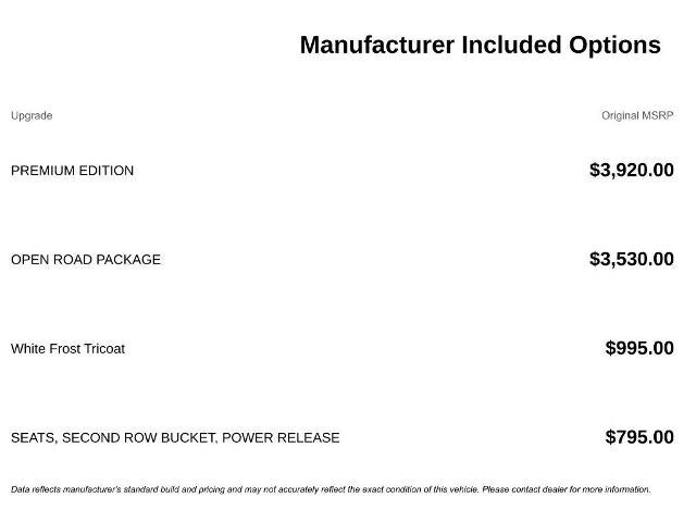 - White Frost Tricoat exterior, Premium Edition package, Open Road Package, and more