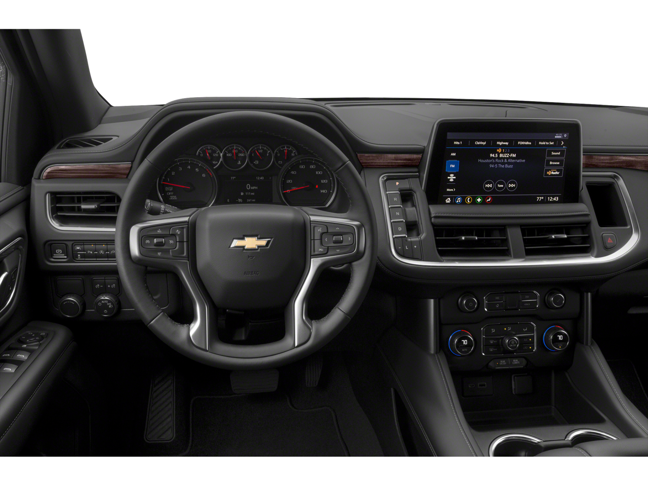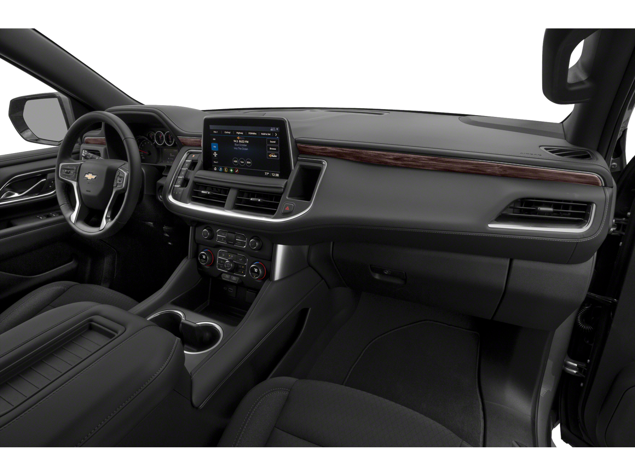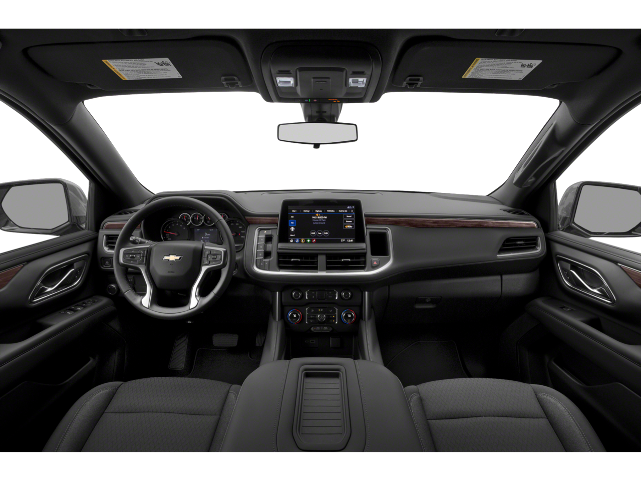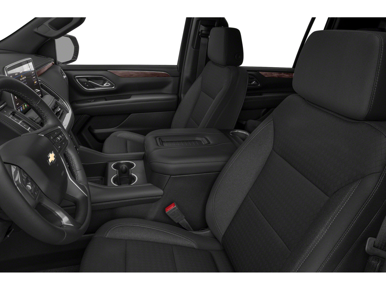 License Plate Front Mounting Package, Preferred Equipment Group 1LS (1st & 2nd Row Color-Keyed Carpeted Floor Mats, Color-Keyed Carpeting Floor Covering, Driver & Front Outboard Passenger Airbags, Floor Console w/Storage Area, LED Daytime Running Lamps, Remote Start, SiriusXM w/360L, and Wrapped Steering Wheel), 1st, 2nd & 3rd Row All-Weather Floor Liners (LPO), 3.23 Rear Axle Ratio, 3rd row seats: split-bench, 4-Wheel Disc Brakes, 6 Speakers, ABS brakes, Air Conditioning, Alloy wheels, AM/FM radio: SiriusXM with 360L, Apple CarPlay/Android Auto, Auto High-beam Headlights, Automatic temperature control, Brake assist, Bumpers: body-color, Compass, Delay-off headlights, Driver door bin, Driver vanity mirror, Dual front impact airbags, Dual front side impact airbags, Electronic Stability Control, Emergency communication system: OnStar and Chevrolet connected services capable, Four wheel independent suspension, Front anti-roll bar, Front Bucket Seats, Front Center Armrest, Front dual zone A/C, Front reading lights, Fully automatic headlights, Heated door mirrors, Illuminated entry, Low tire pressure warning, Occupant sensing airbag, Outside temperature display, Overhead airbag, Overhead console, Panic alarm, Passenger door bin, Passenger vanity mirror, Power door mirrors, Power driver seat, Power passenger seat, Power steering, Power windows, Premium audio system: Chevrolet Infotainment 3, Premium Cloth Seat Trim, Premium Smooth Ride Suspension, Radio: Chevrolet Infotainment 3 System, Rain sensing wipers, Rear air conditioning, Rear anti-roll bar, Rear reading lights, Rear seat center armrest, Rear window defroster, Rear window wiper, Remote keyless entry, Roof rack: xxxxxx, Security system, Speed control, Speed-sensing steering, Split folding rear seat, Spoiler, Steering wheel mounted audio controls, Tachometer, Telescoping steering wheel, Tilt steering wheel, Traction control, Trip computer, Variably intermittent wipers, Voltmeter, Wheel Locks (Set of 4) (LPO), Wheels: 18 x 8.5 Bright Silver Painted Aluminum, and Wheels: 22 x 9 Polished Aluminum.