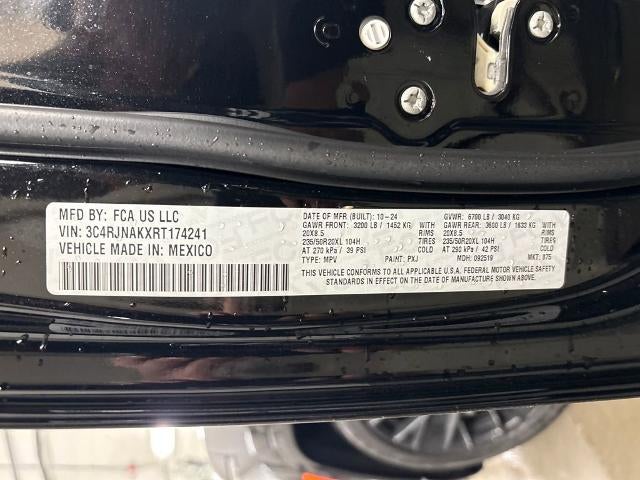 Quick Order Package 25E Launch Edition, Two Tone Paint Group, Navigation System, 19 Speakers, 4-Wheel Disc Brakes, ABS brakes, Air Conditioning, Alloy wheels, AM/FM radio: SiriusXM with 360L, Apple CarPlay/Android Auto, Audio memory, Auto High-beam Headlights, Auto-dimming door mirrors, Auto-dimming Rear-View mirror, Automatic temperature control, Brake assist, Bumpers: body-color, Compass, Delay-off headlights, Driver door bin, Driver vanity mirror, Dual front impact airbags, Dual front side impact airbags, Electronic Stability Control, Emergency communication system: Jeep Connect, Four wheel independent suspension, Front anti-roll bar, Front Bucket Seats, Front Center Armrest w/Storage, Front dual zone A/C, Front fog lights, Front reading lights, Fully automatic headlights, Garage door transmitter, Heads-Up Display, Heated door mirrors, Heated front seats, Heated rear seats, Heated steering wheel, Heavy Duty Suspension, Illuminated entry, Knee airbag, Low tire pressure warning, Memory seat, Neo Ultra Lux III Seats, Occupant sensing airbag, Outside temperature display, Overhead airbag, Panic alarm, ParkView Rear Back-Up Camera, Passenger door bin, Passenger vanity mirror, Power door mirrors, Power driver seat, Power Liftgate, Power moonroof, Power passenger seat, Power steering, Power windows, Premium audio system: UConnect 5, Radio data system, Radio: Uconnect 5 Nav w/12.3 Display, Rain sensing wipers, Rear air conditioning, Rear anti-roll bar, Rear dual zone A/C, Rear reading lights, Rear seat center armrest, Rear side impact airbag, Rear window defroster, Rear window wiper, Remote keyless entry, Security system, Speed control, Speed-sensing steering, Speed-Sensitive Wipers, Split folding rear seat, Spoiler, Steering wheel memory, Steering wheel mounted audio controls, Telescoping steering wheel, Tilt steering wheel, Traction control, Trip computer, Turn signal indicator mirrors, Variably intermittent wipers, Ventilated front seats, Ventilated rear seats, Wheels: 20 x 8.5 Gloss Black Painted Aluminum (DISC), and Wheels: 20 x 8.5 Painted Aluminum Design 1.
