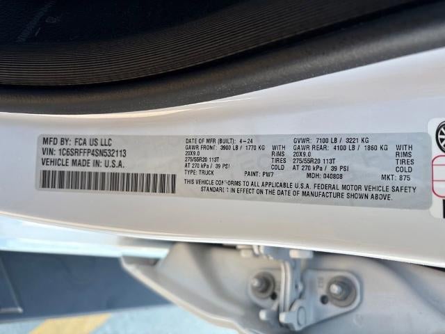 Under the hood, this Ram 1500 is powered by a robust 3.0L I6 Hurricane engine, delivering impressive performance and efficiency with 19 city/24 highway MPG. The 8-speed automatic transmission and 4-wheel drive system ensure you'll have the capability to tackle any terrain with confidence.